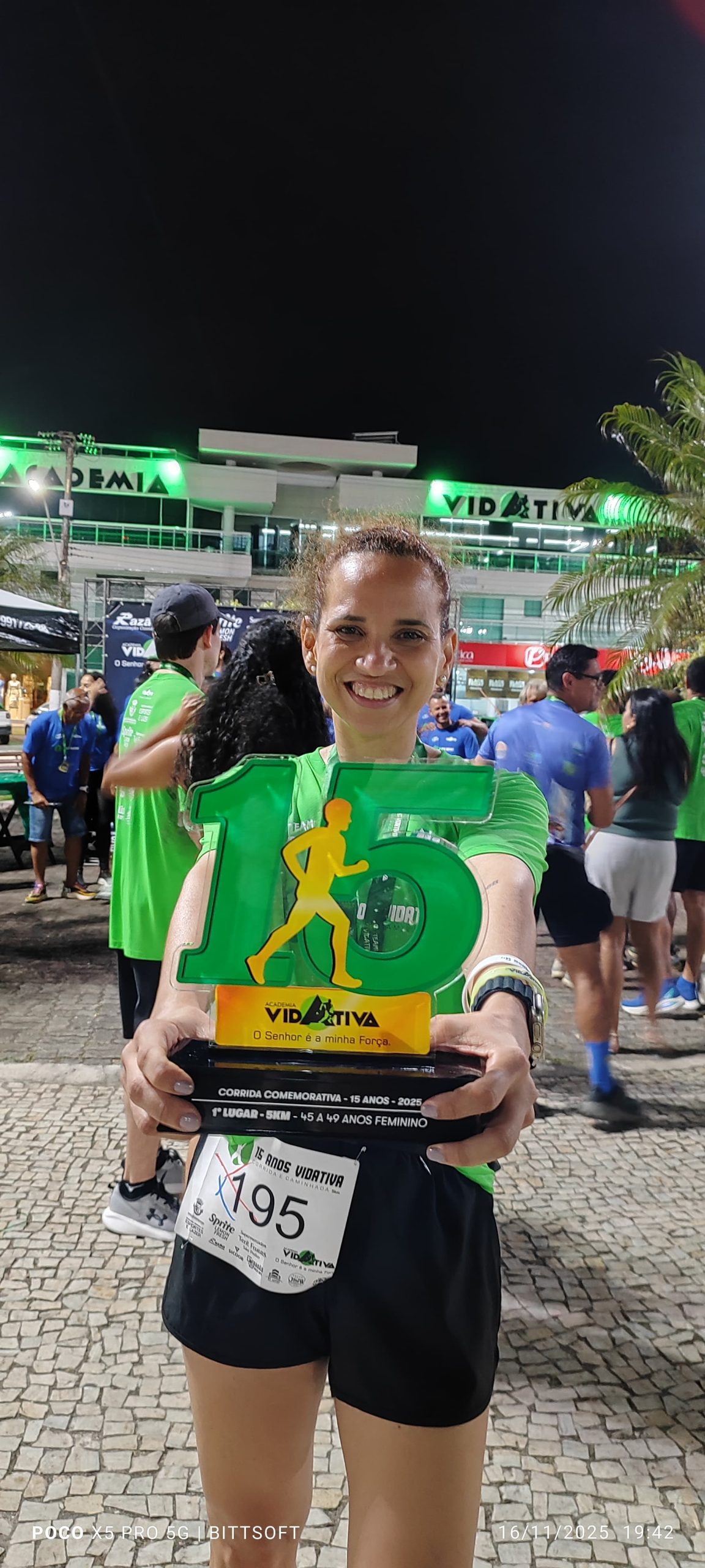 15 anos vida ativa academia – 5 km – Primeiro Lugar na categoria 45-49 anos (17-11-2025)